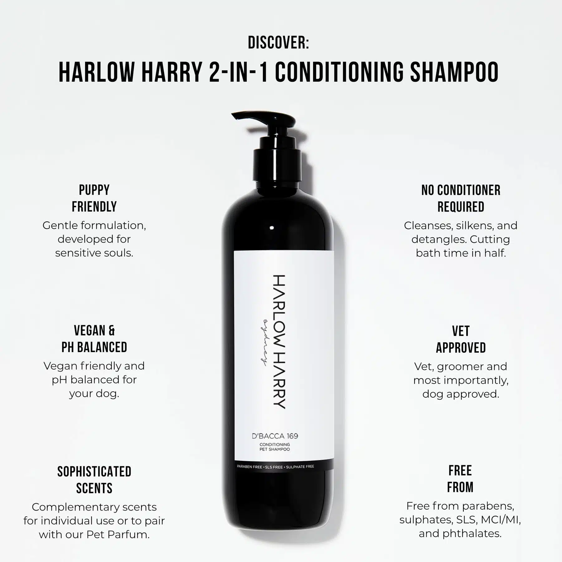 Als je op zoek bent naar de oplossing om in één stap je hond te reinigen, zijdezacht te maken en beter te laten ruiken dan je je kunt voorstellen… Dan heb je dé oplossing hier gevonden: Harlow Harry 2-in-1 conditioning shampoo. Het halveert de badtijd, waardoor er meer tijd overblijft om samen leuke dingen te doen. Het is een echte 2-in-1 oplossing voor elk vachttype. De vacht van je hond zal heerlijk en zacht aanvoelen, precies wat je nodig hebt voor die knuffels na het baden.