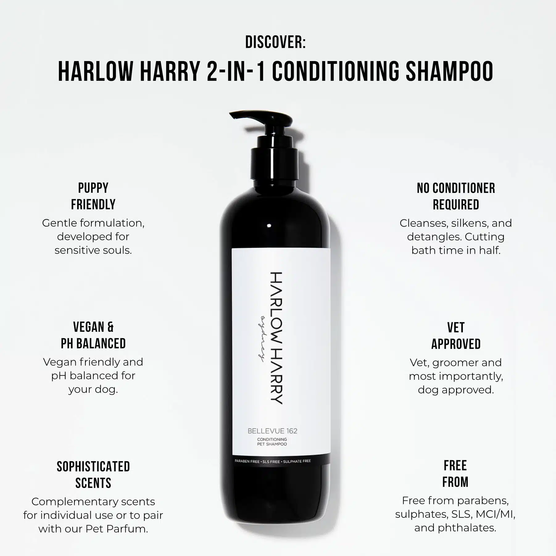 Als je op zoek bent naar de oplossing om in één stap je hond te reinigen, zijdezacht te maken en beter te laten ruiken dan je je kunt voorstellen… Dan heb je dé oplossing hier gevonden: Harlow Harry 2-in-1 conditioning shampoo. Het halveert de badtijd, waardoor er meer tijd overblijft om samen leuke dingen te doen. Het is een echte 2-in-1 oplossing voor elk vachttype. De vacht van je hond zal heerlijk en zacht aanvoelen, precies wat je nodig hebt voor die knuffels na het baden.