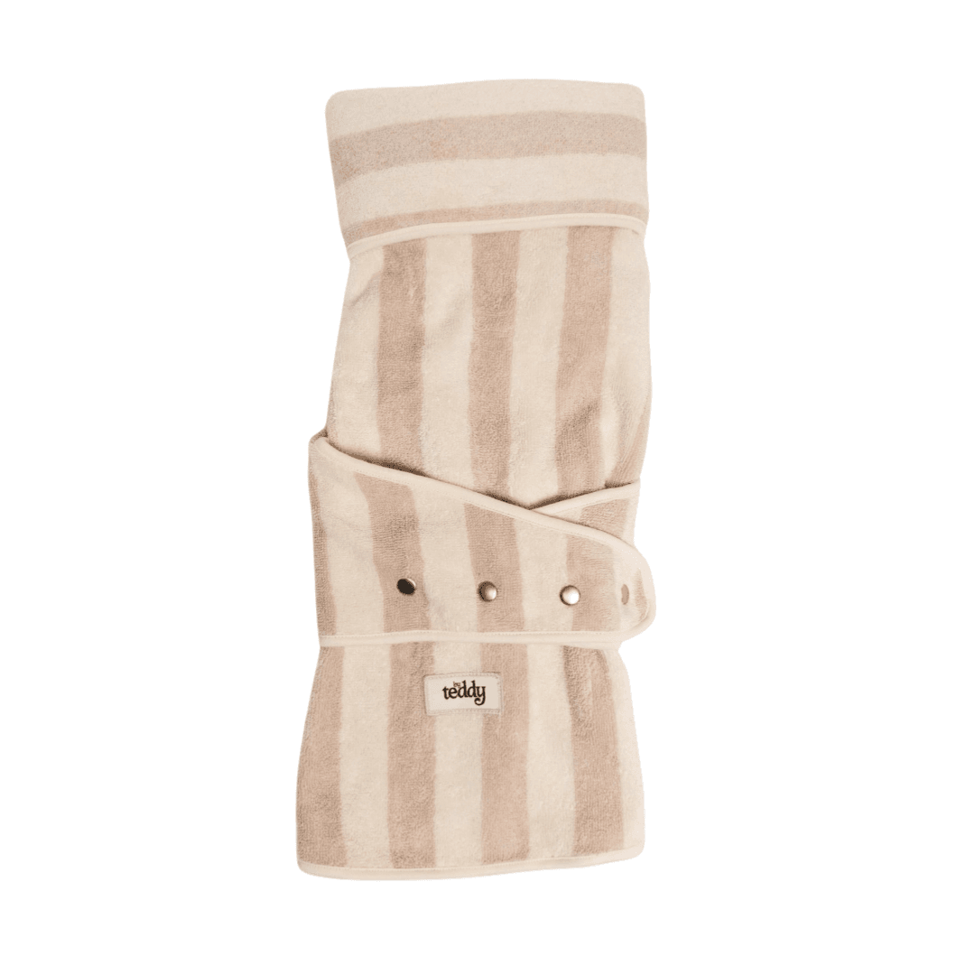 Maak kennis met de hondenbadjas van By Teddy. Een stijlvolle en praktische oplossing die rust, warmte en comfort brengt na iedere wandeling of na baddertijd. Deze zorgvuldig ontworpen droogjas helpt je hond ontspannen op te drogen, zonder gedoe of koude rillingen.