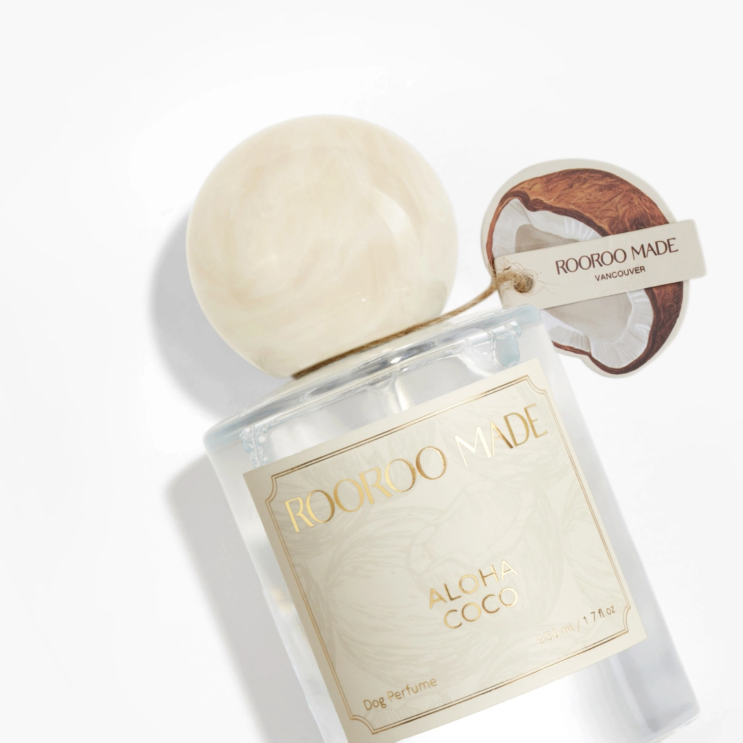 Tropische hondenparfum met kokos, vanille & bergamot. Laat jouw hond ruiken alsof hij net van een tropisch strand komt! De ALOHA COCO hondenparfum van ROOROO MADE is een luxe geurbeleving speciaal ontwikkeld voor viervoeters. Fris, zoet en romig – een perfecte balans van bergamot, vanillepraline en zachte kokosnoot.