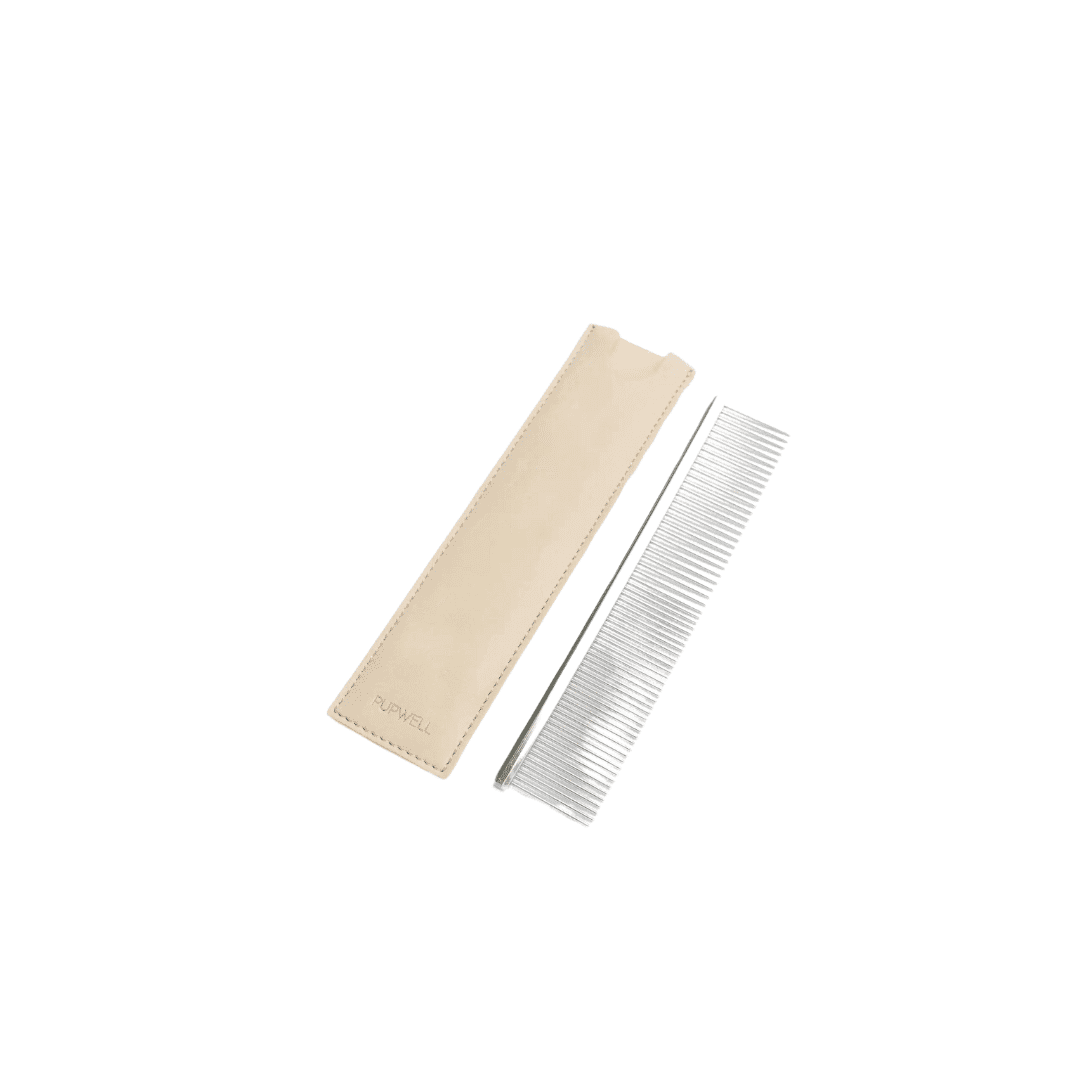 Deze stevige, roestvrijstalen kam glijdt zachtjes door de vacht van je hond zonder haken of breuk te veroorzaken. We raden aan om de kam na de slicker borstel te gebruiken in je dagelijkse hondenverzorging, waardoor het de perfecte aanvulling is. Elke kam wordt standaard geleverd met een beschermhoes van veganistisch leer. De kam kan gebruikt worden van pup tot volwassen honden.