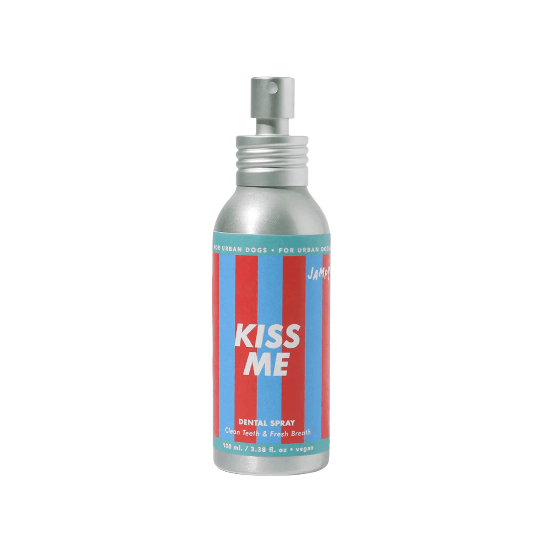 Kiss Me is een eetbare tandspray met specifieke activiteit om de vorming van tandsteen te vertragen en tegen te gaan en verminderen van vlekken te bevorderen. De botanische extracten helpen om de adem van je hond verder te verbeteren, waardoor hij kusbestendig wordt!