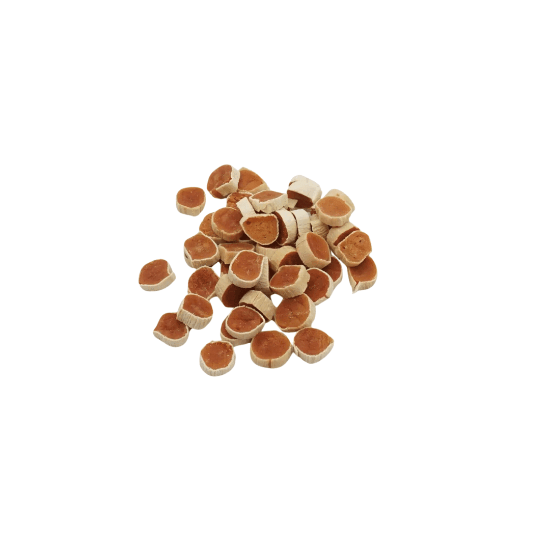 Lekker als beloning tussendoor of te gebruiken om te trainen. Makkelijk in kleinere stukjes de scheuren.