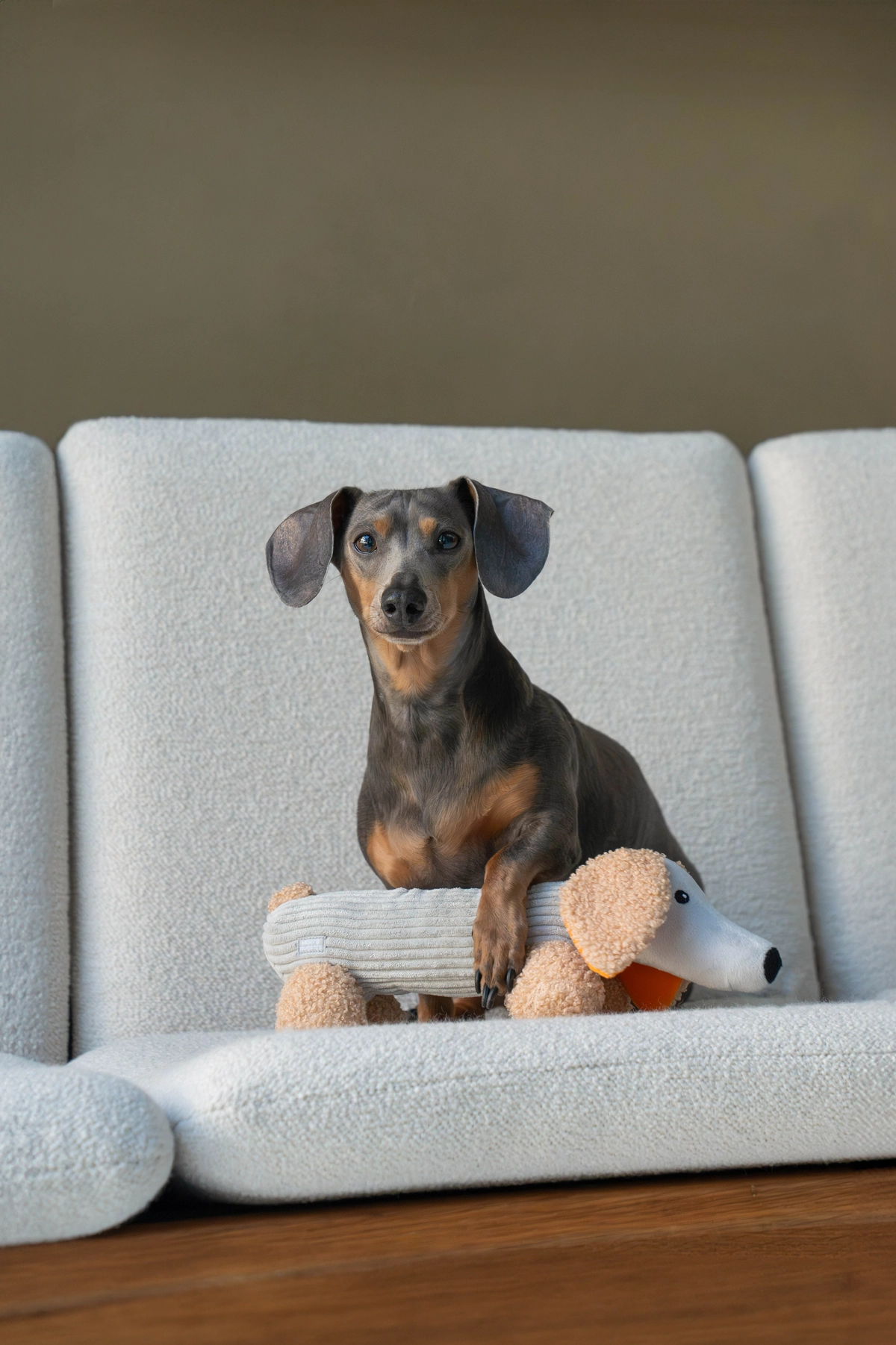 Ontmoet Micky, de vrolijke teckel die je hond nooit meer wil missen! Deze schattige knuffel is zacht, vrolijk en bomvol verrassingen. Met een pieper in haar buik en knisperende oren is Micky het perfecte speelmaatje voor elke hond die houdt van ontdekken, knuffelen en spelen. Of je hond nu houdt van spelen of gewoon gezellig samen dutten, met Micky wordt het gegarandeerd een feestje!